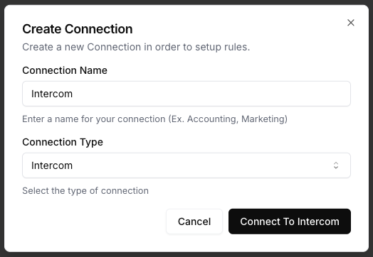 You will be redirected to Intercom to authorize the Meshes app. After authorization is complete, Intercom will redirect you back to Meshes and the connection will be available for use in rules.
